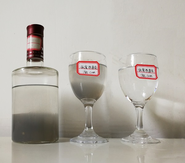 過(guò)濾后在保持酒體香酯成分不損傷的情況下,去除酒體中的苦味,異雜味,爆辣味,怪味及酒中異香,催熟后酒體無(wú)苦味,異雜味,爆辣味,酒體香氣純正,口感綿柔,協(xié)調(diào),爽凈,醇厚,可達(dá)到三年以上自然老熟陳化口感,低度酒抗零下十五度低溫不渾濁。